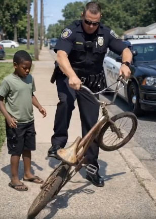 The officer presented the bicycle to the boy, explaining that it was important for him to have something dependable and secure. The gesture transformed the earlier moment into something entirely different.