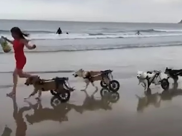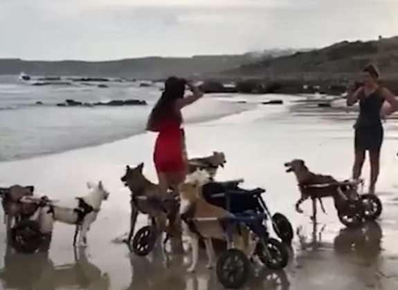 During the beach trip, the joyful scene was captured on video. The footage showed the dogs racing along the shoreline in their wheelchairs, clearly enjoying the freedom of movement.