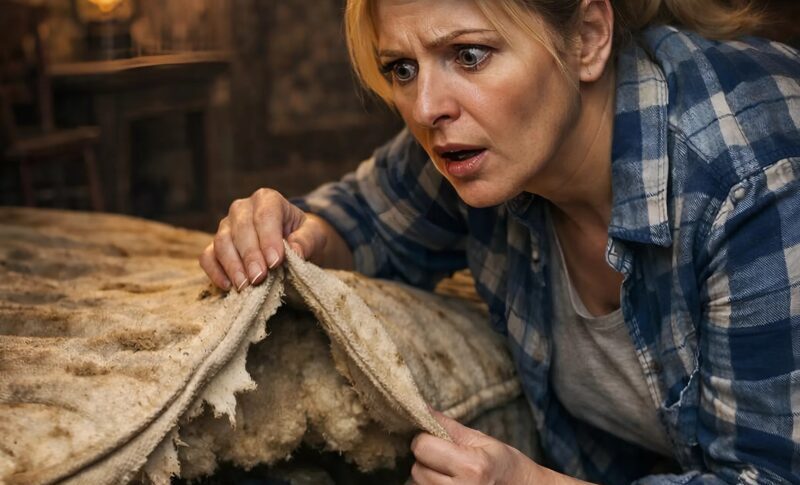 The mattress was worn and heavy, with fabric that had aged over time. Lina carefully opened the seams, layer by layer, working slowly through the material.