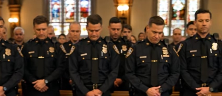 Rain settled softly over St. Bartholomew’s Memorial Hall on the morning Officer Michael Grant was laid to rest. The sky was gray, the flag outside was darkened by the weather, and rows of officers in dress uniform filled the hall with a stillness that felt heavier than words.