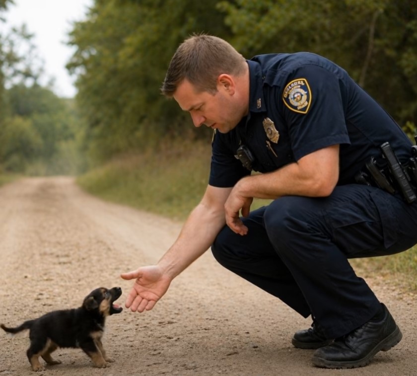 When Eli turned toward his patrol SUV, the puppy cried out and tugged at his pant leg.