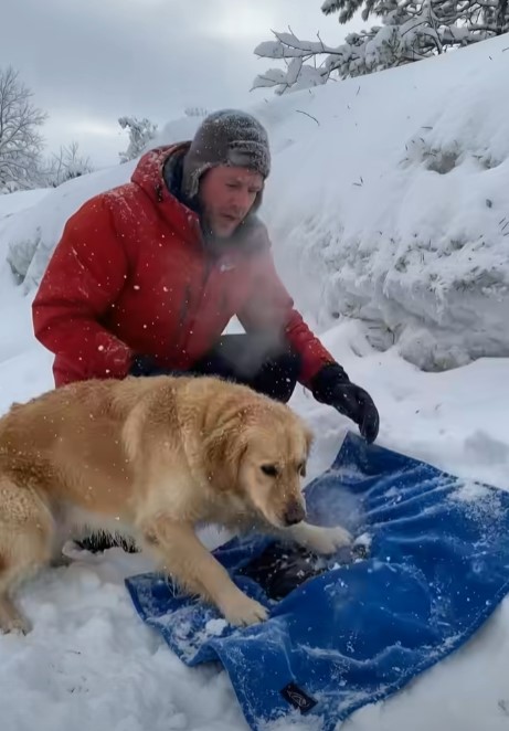 Leaving the vehicle in such weather was risky, but the rescuer sensed the animal was not simply lost. The dog seemed to be leading him somewhere.