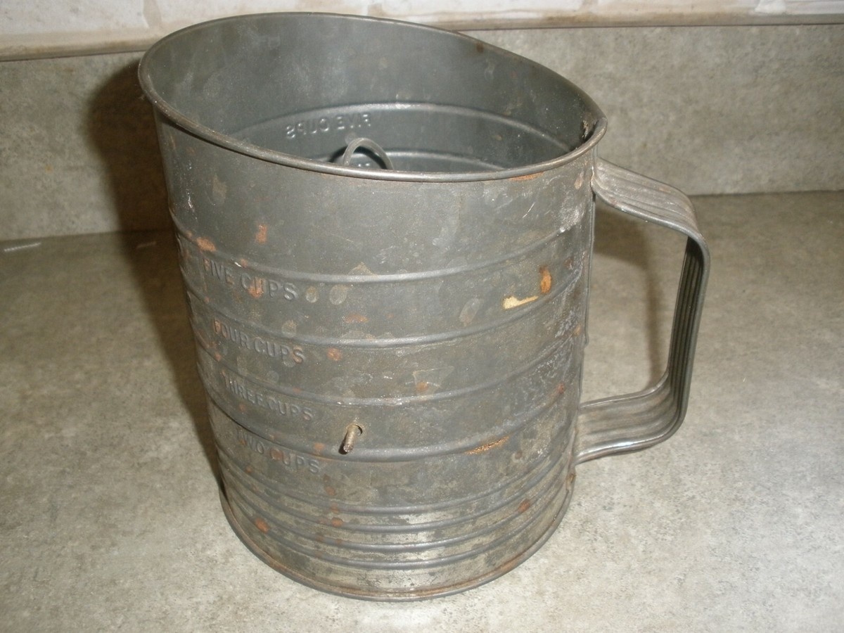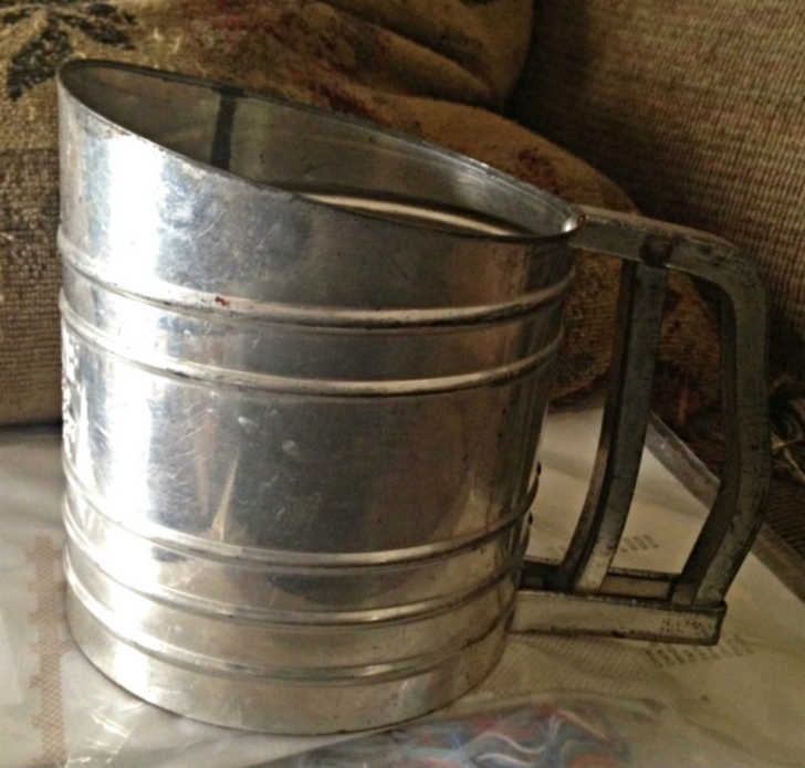 It was a small metal cup with a crank handle attached to the side, unlike anything commonly found in modern kitchens.