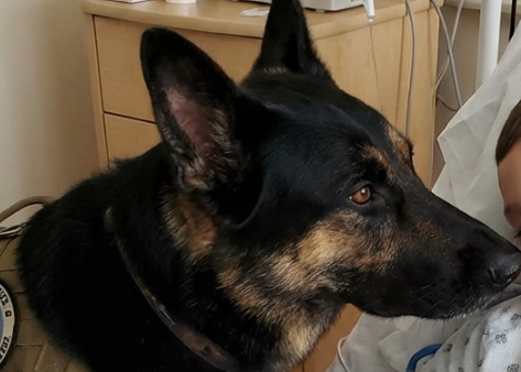 While the family remained inside, someone else kept watch just beyond the hospital doors. Rico, the family’s German Shepherd, waited patiently near the entrance each day.