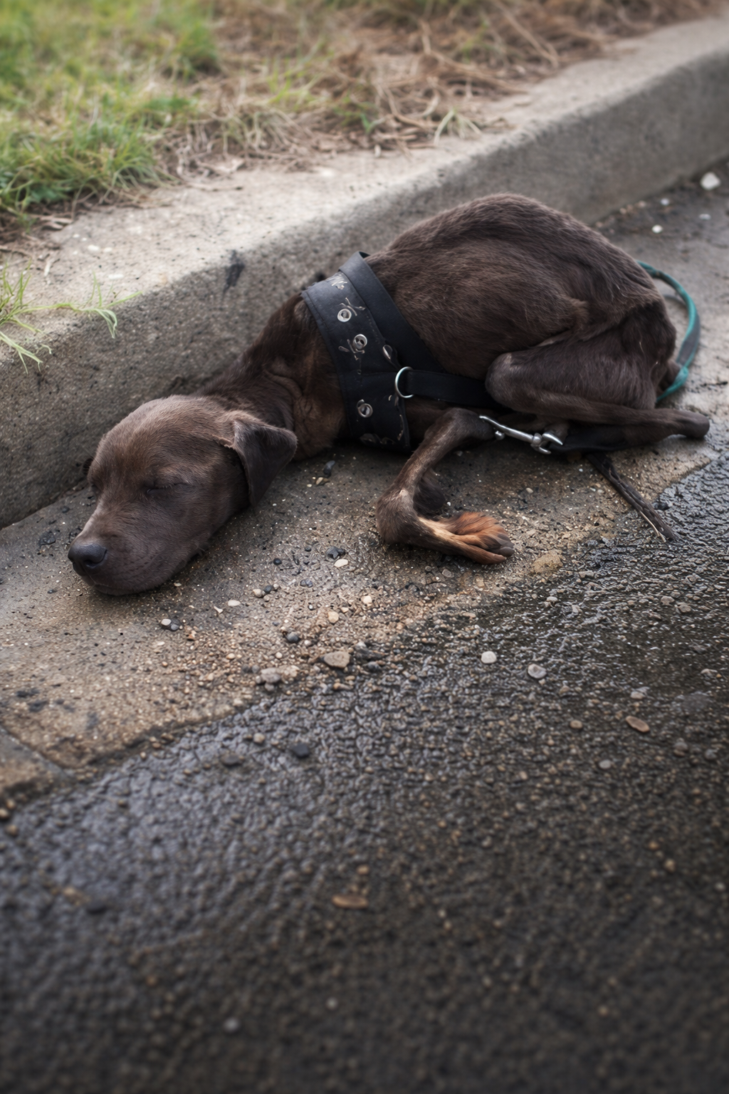 Despite the harsh surroundings, it was the only place she could keep her puppies close and somewhat hidden.