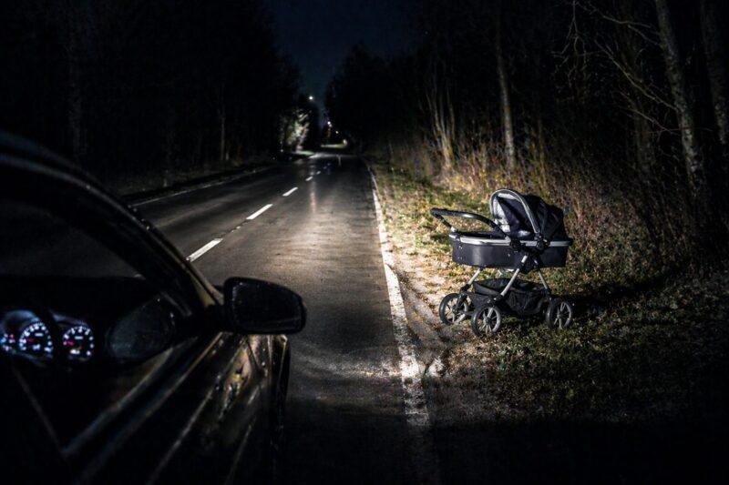 Roadside Stroller at Night Sparks Important Safety Reminder
