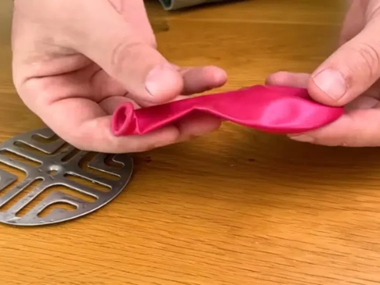 The method involves placing a modified balloon inside the drain cover setup so that water can still pass through while the opening becomes more difficult for cockroaches to navigate. It is a small adjustment, but it may help change how accessible the drain is to pests.